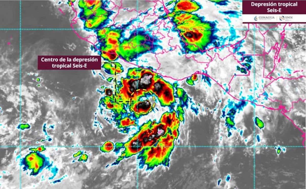 La depresión tropical Seis E se intensificó frente a las costas del Oceánico Pacífico y continúa fortaleciéndose de manera gradual, informó la Coordinación Estatal de Protección Civil y Gestión de Riesgos (CEPCyGR). Esta mañana, la depresión tropical se localizó a…