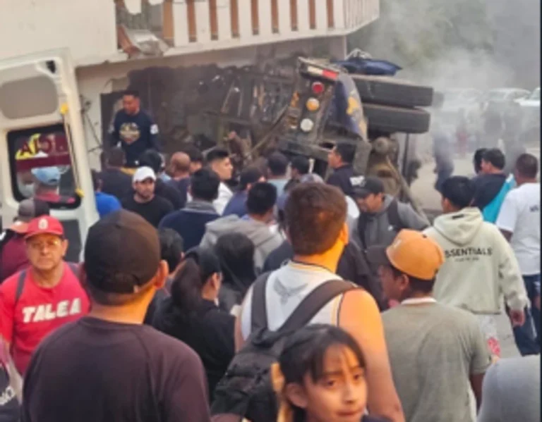 Camión “trocero” choca contra vivienda y embiste a personas en Guelatao, Oaxaca; hay dos muertos